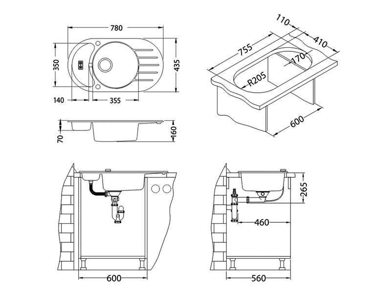 Veličina posuda/e (mm): fi355x160 / 140x350x70