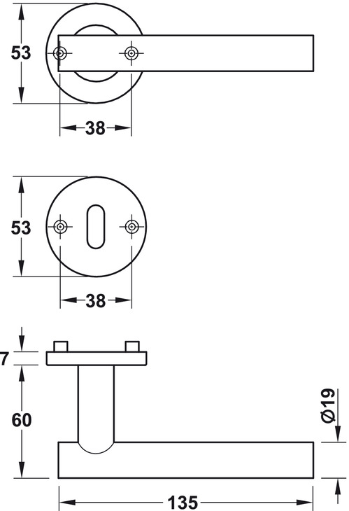 Lagerung - Türdrücker in Rosette fest-drehbar gelagert, mit Hochhaltemechanik