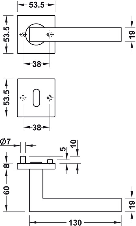 Lagerung - Türdrücker in Rosette fest-drehbar gelagert, mit Hochhaltemechanik