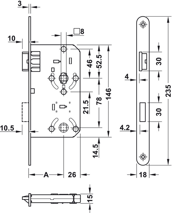 Dimenzije prihvatnog lima 235 x 18 mm