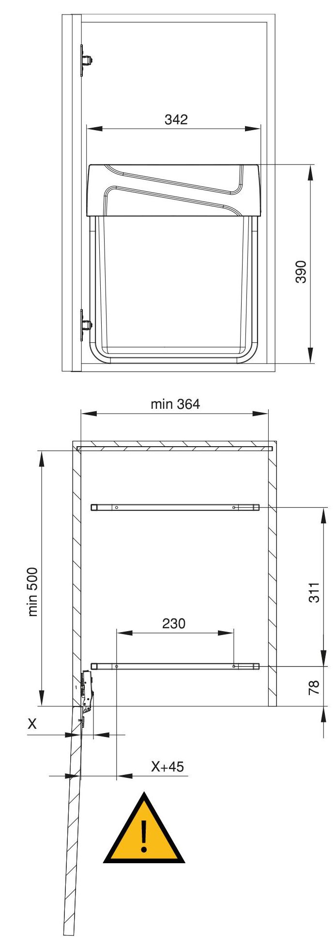 kuhinjskom ormariću, te omogućuje lakši prilaz kantama. ukupni volumen iznosi 40 litara a podesan je