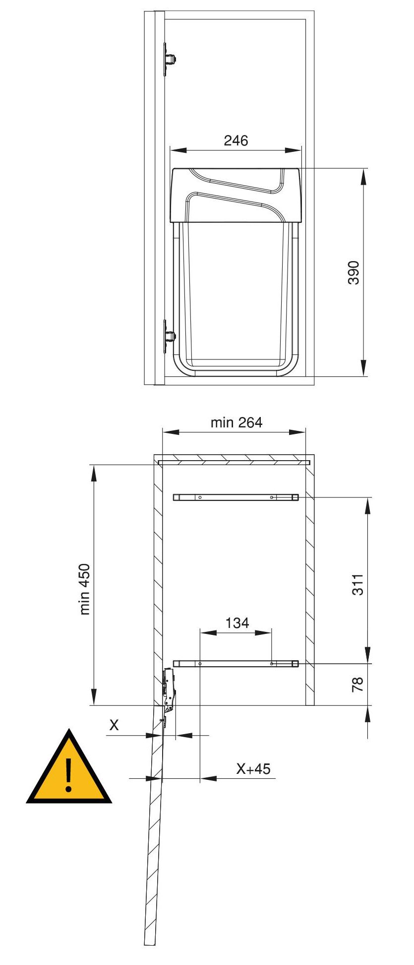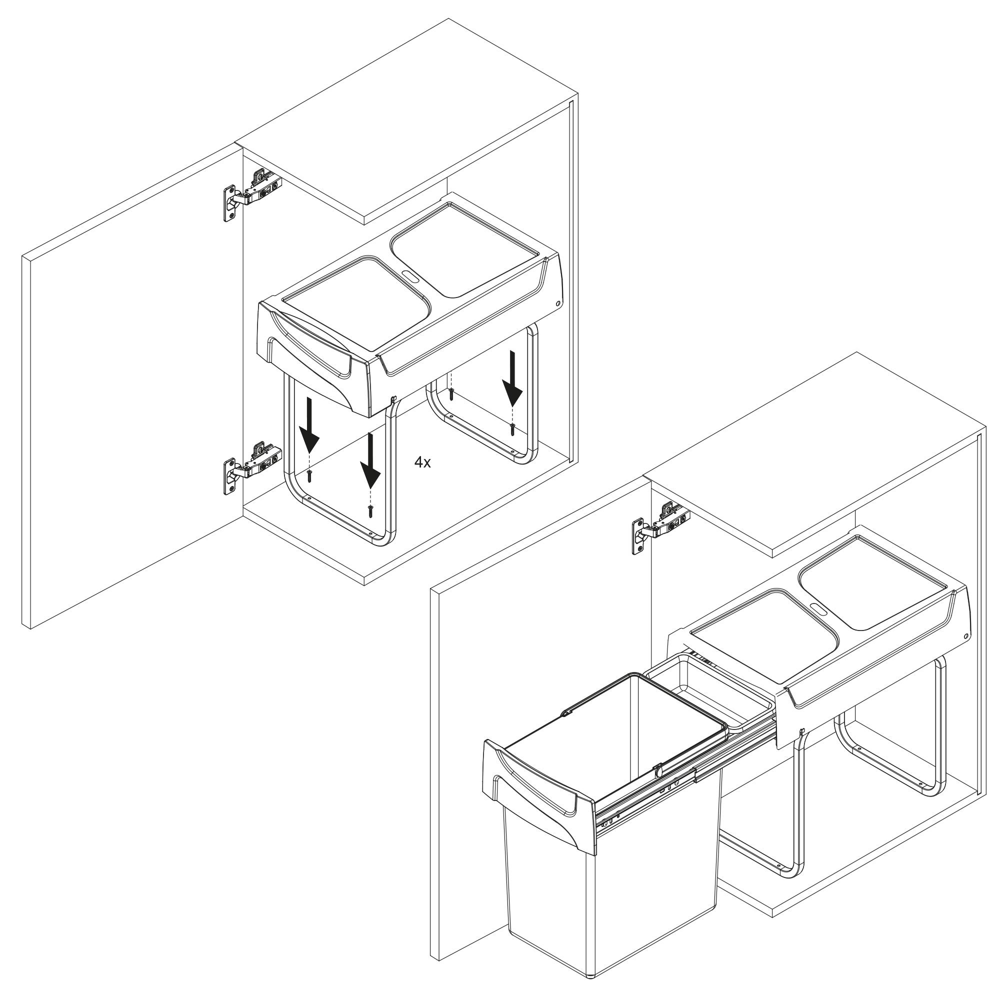 izvlačna struktura ove kante za smeće pričvršćuje se na tlo elemnta te omogućuje bezprijekornu