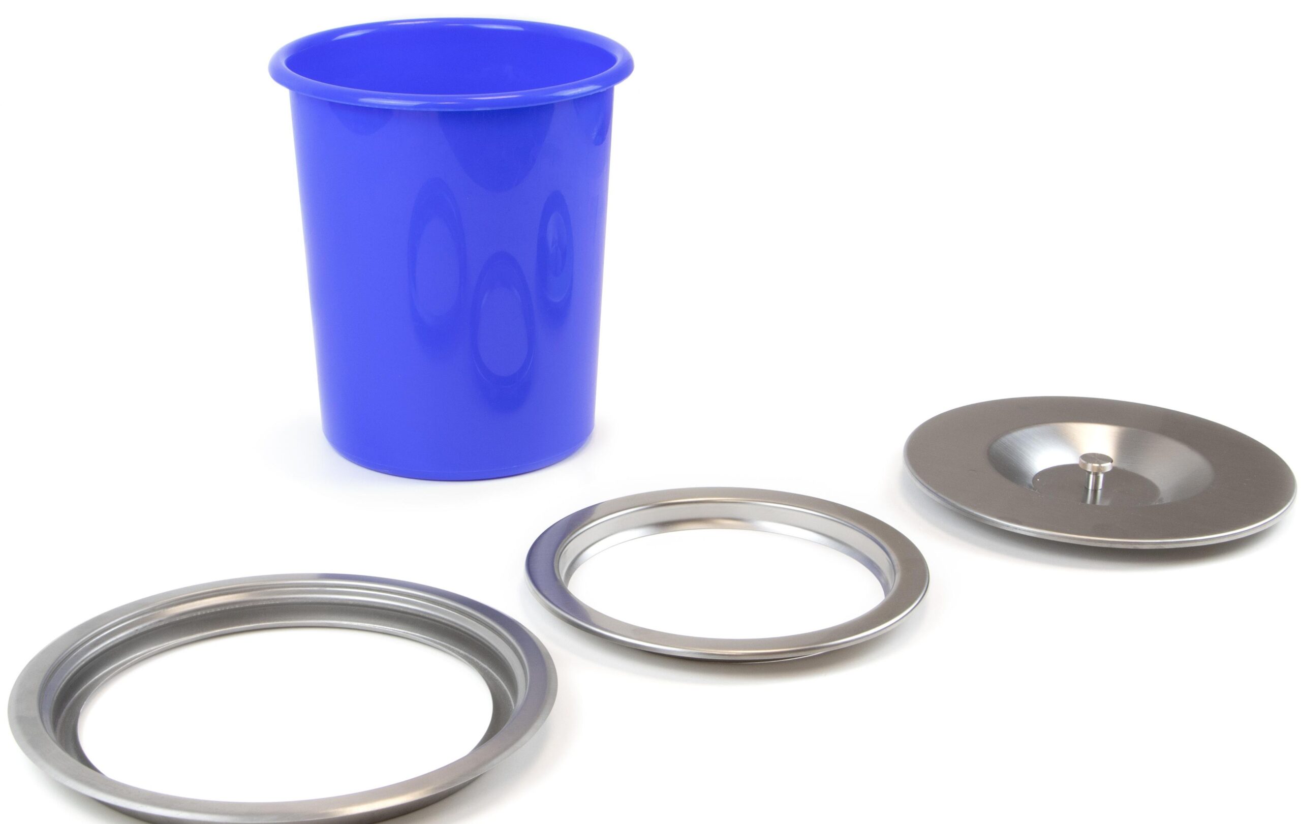 The supply includes an 8L container, lid,two rings and assembly instructions. Made of blue plastic