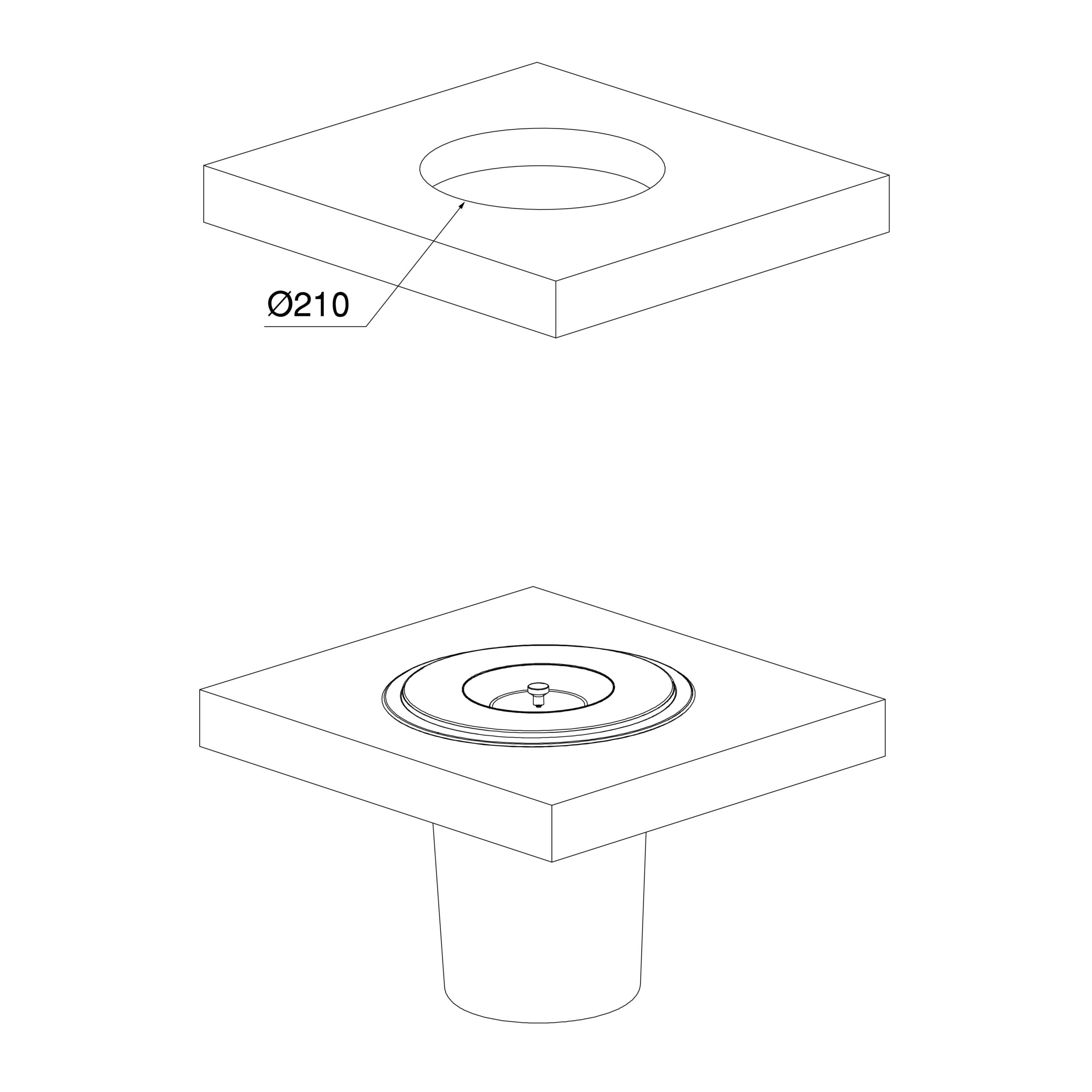 For the installation is necessary a previous machining of 210mm diameter. With two support rings