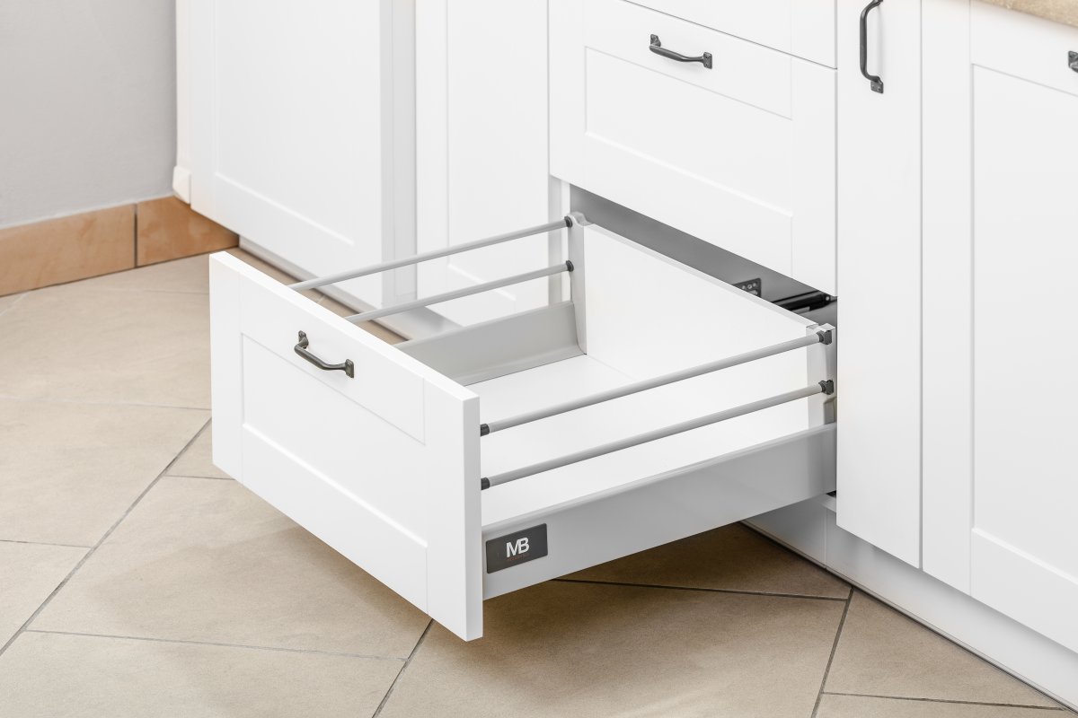 Modern box ima visoku izdržljivost, certificiranu za 60 000 ciklusa (SGS). Omogućuje opterećenje do 40 kg i potpuno izvlačenje u duljinama između 250 i 550 mm. Dolazi u 4 varijante visine (68, 83, 146, 210 mm) za univerzalne ladice, obje s utorom i s prednjom stranom koja se preklapa. Visoka udobnost proizvoda osigurana je tihim zatvaranjem i sinkronizacijom putanje klizača. U ladicu stane čitav niz sustava organizacije prostora, uložaka za pribor za jelo, podmetača i razvrstivača otpada.