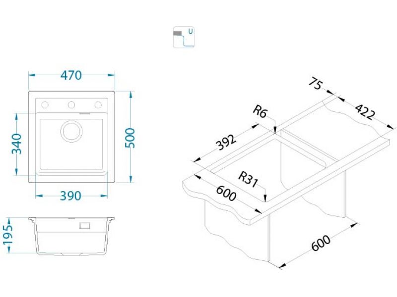 Način ugradnje: Usadni (I) / Ugradni (U)