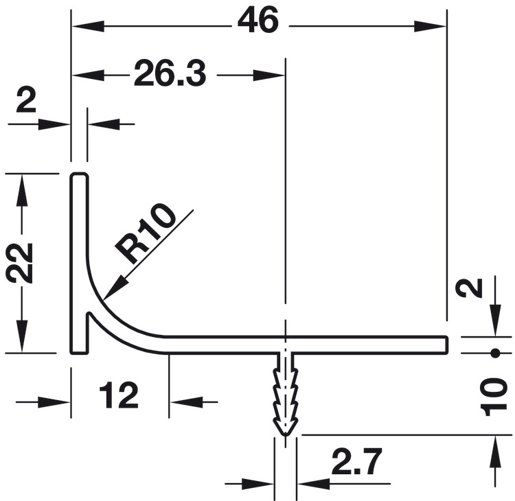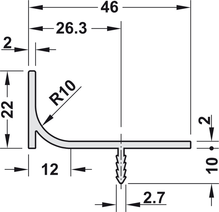 Okomita ručkica za namještaj, od aluminija, za fronte vizualno bez ručkice