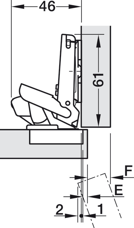 Bočno podešavanje od –1,5 do +4,5 mm podešavanje visine od –2 do +2 mm podešavanje dubine s Duomatic A montažnim pločama +2,8 mm, s Duomatic SM montažnim pločama od –0,5 do +2,8 mm