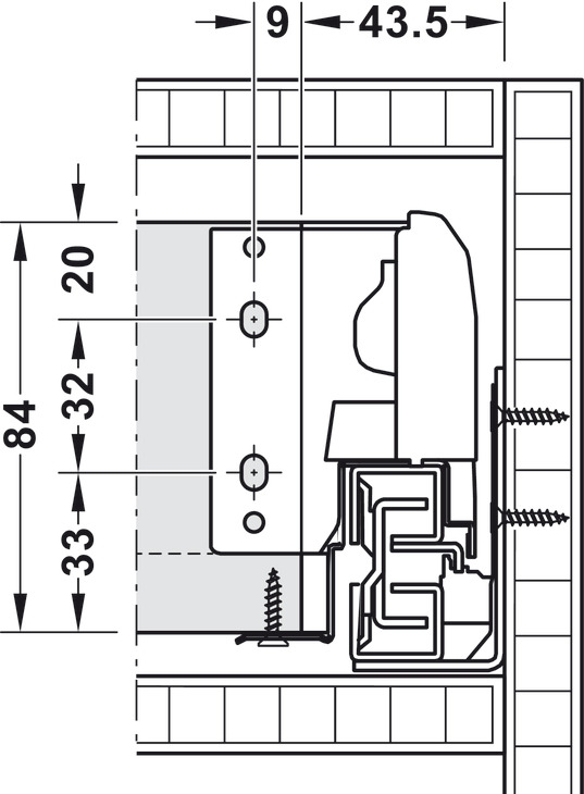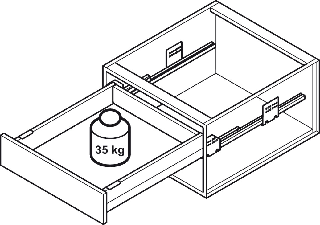 Garnitura ladice, Häfele Matrix Box S35, visina ladice 84 mm, nosivost 35 kg, s mehanizmom samouvlačenja i ublaživačem