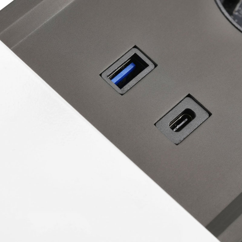 Praktičan i elegantan dizajn povećava udobnost vašeg rada. Prestino utičnica opremljena je kliznim magnetnim štitom za zaštitu utičnica od vlage i prljavštine. Izgleda sjajno s bilo kojom radnom pločom, stvarajući gotovo besprijekorno glatku površinu. Savršeno za uredska stolna računala, sobe za sastanke, izložbene prostore, trgovine i hotele. Pokazat će se korisnim gdje god je estetika važna. Tri završne boje – bijela, crna i aluminij – dobro će se slagati s crnim, sivim i smeđim stolnim stolovima kao dodatak stolu.