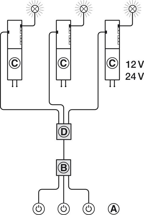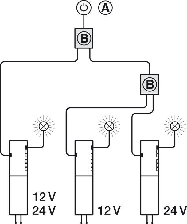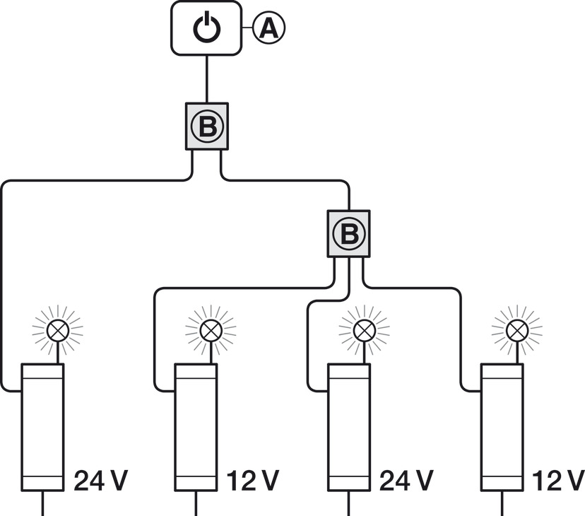 Moguće je kombinirati različite sustave (12 V, 24 V, 350 mA).