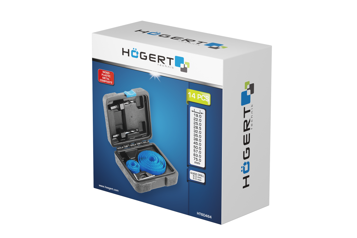 Set od 14 svrdla za rupe, upakiran u čvrstu plastičnu kutiju, cjelovito je rješenje za profesionalce