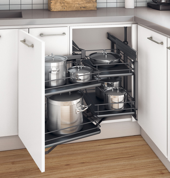Za donje kutne ormare 900 x min. 495 mm, zakretne u lijevo, drveni pod, antracit praškasto premazano, crna