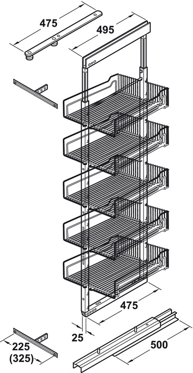 4 ili 5 košara, prednji stabilizator -, za unutarnju visinu ormara 190-220cm, za širinu ormara 300 mm