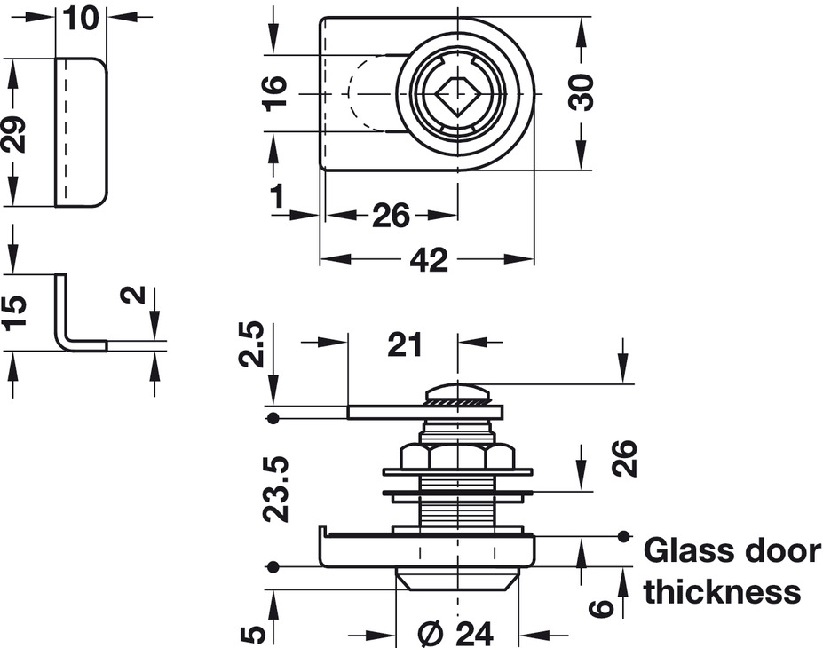 Für 2-flügelige Türen bitte Gegenstück separat bestellen.
