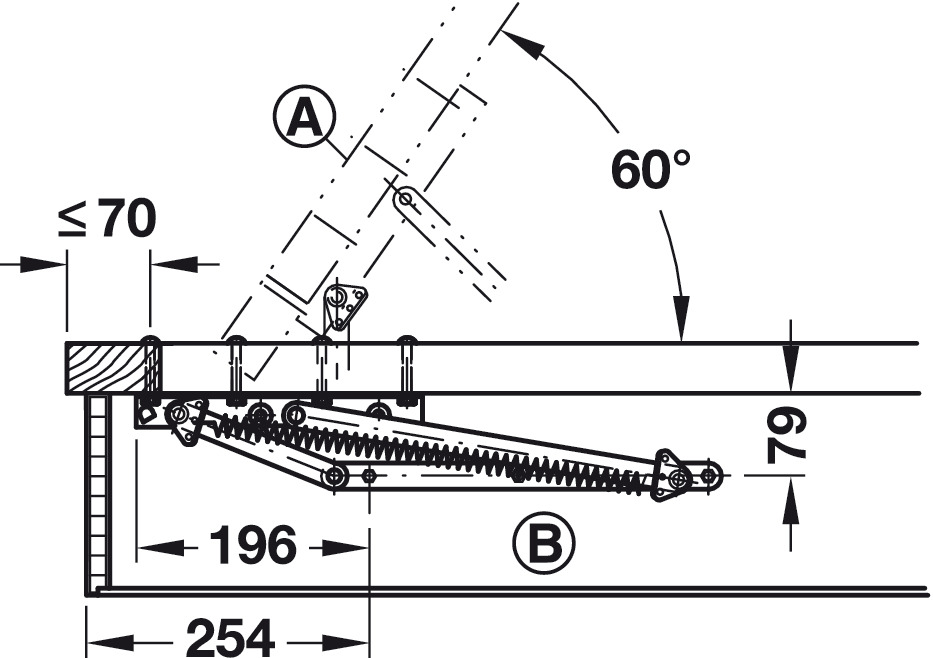 Opružni okov, za kauče i krevete s kutijama za krevet Za bočno otvaranje, čelik, pocinčan