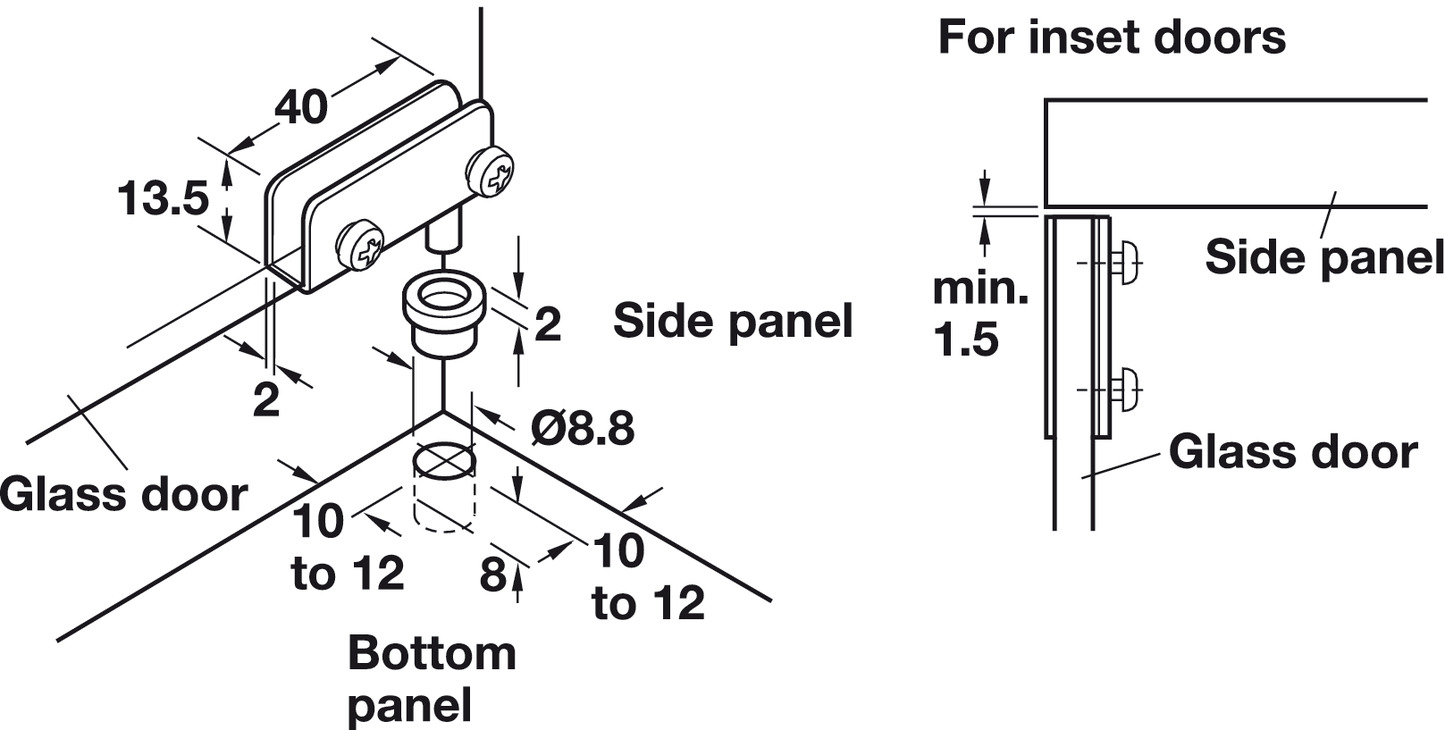 Za konstrukcije od stakla / drva, ugradnju, otvor pod uglom 110 ° -, kromiran