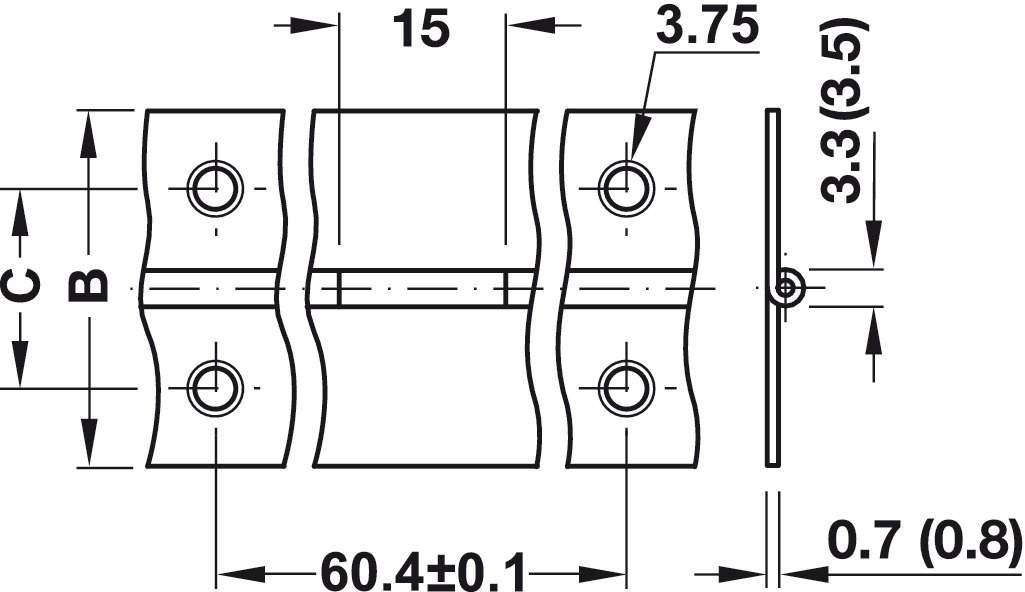 Debljina prirubnice 0,7 mm (s otvorenom širinom 40 mm: 0,8 mm) mm