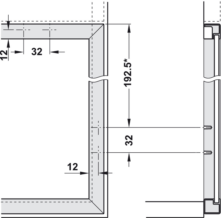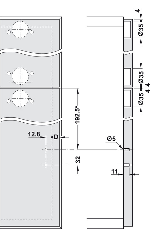 Skriveni zglob, Häfele Duomatic 110 °, ugradnja u potpunom položaju