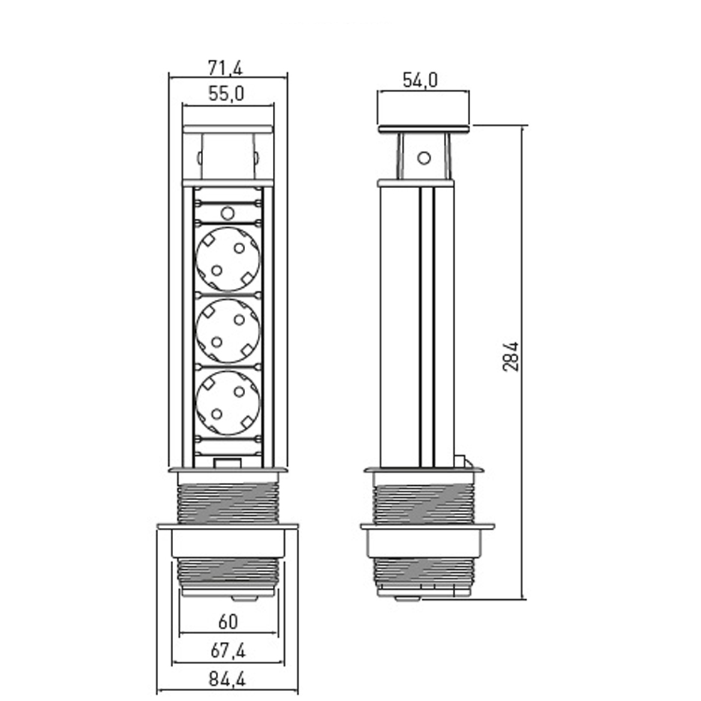 UTIČNICA IZVLAČNA G fi 60 3X ŠUKO 2USB CRNA PUSH